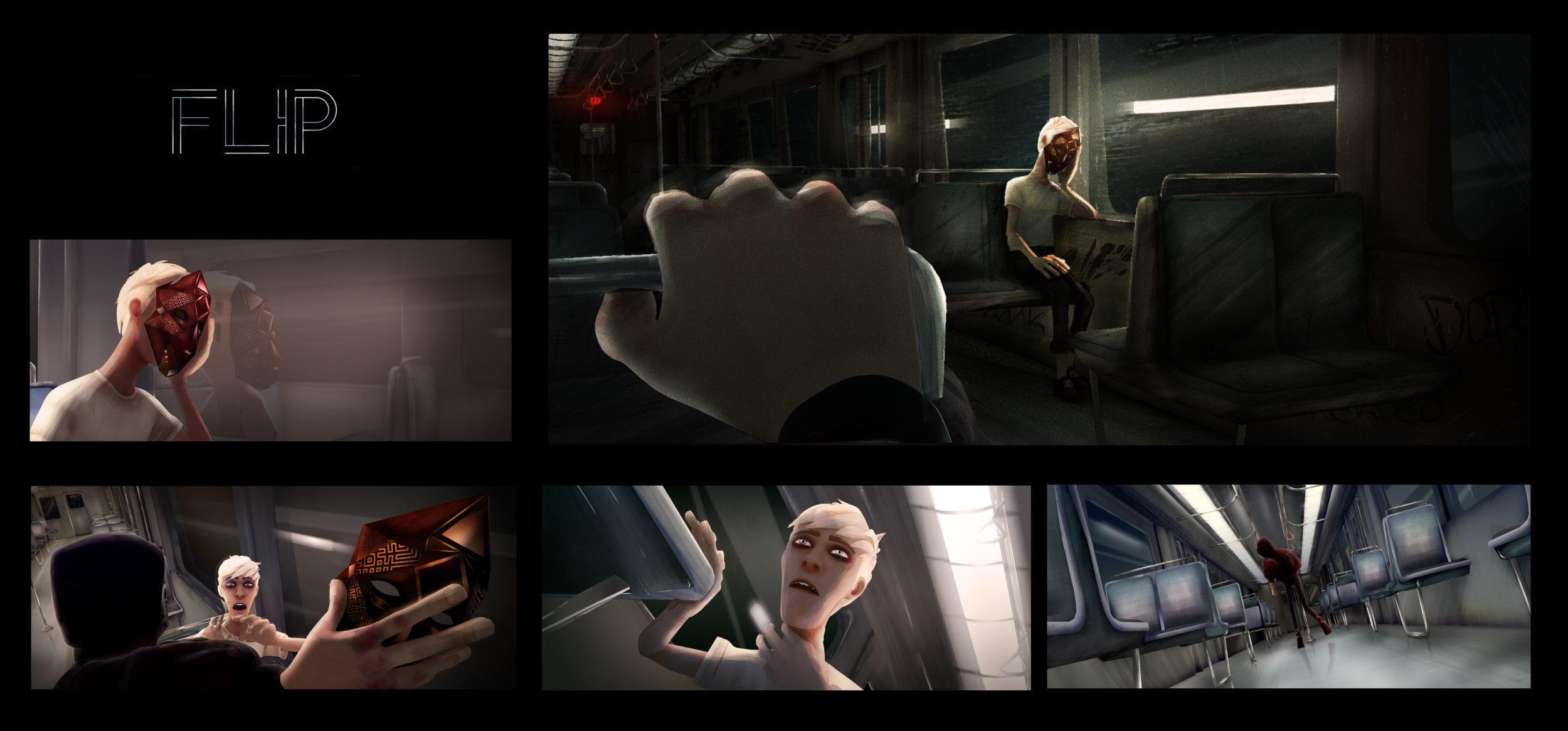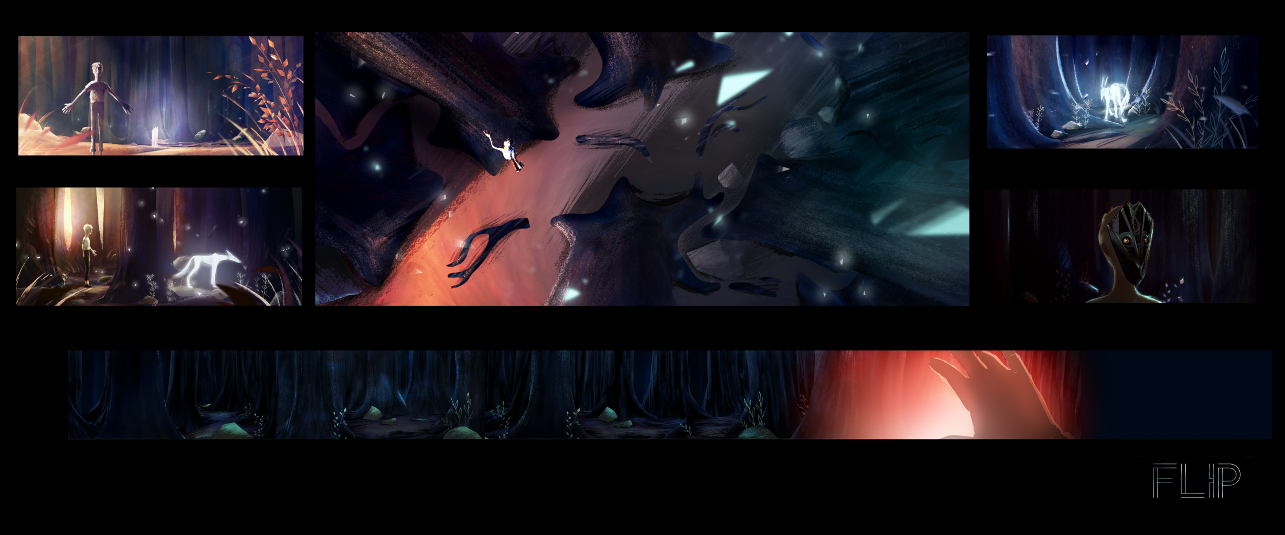 On Flip , I did the Art direction and I mostly worked on the look development and I followed each shot until the final step : compositing. I set the atmosphere of each sequence with a color board.